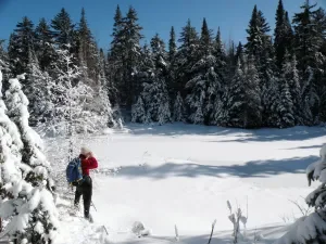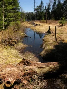 In stark contrast to the above trails is the accessible route to Sand Pond on the western edge of the wilderness, where the Pepperbox spills across the county line into Lewis County. This short trail is hardened for wheelchair use and leads to one of the larger ponds in the area. However, getting there entails navigating a forestry road network through the Croghan Tract Conservation Easement.