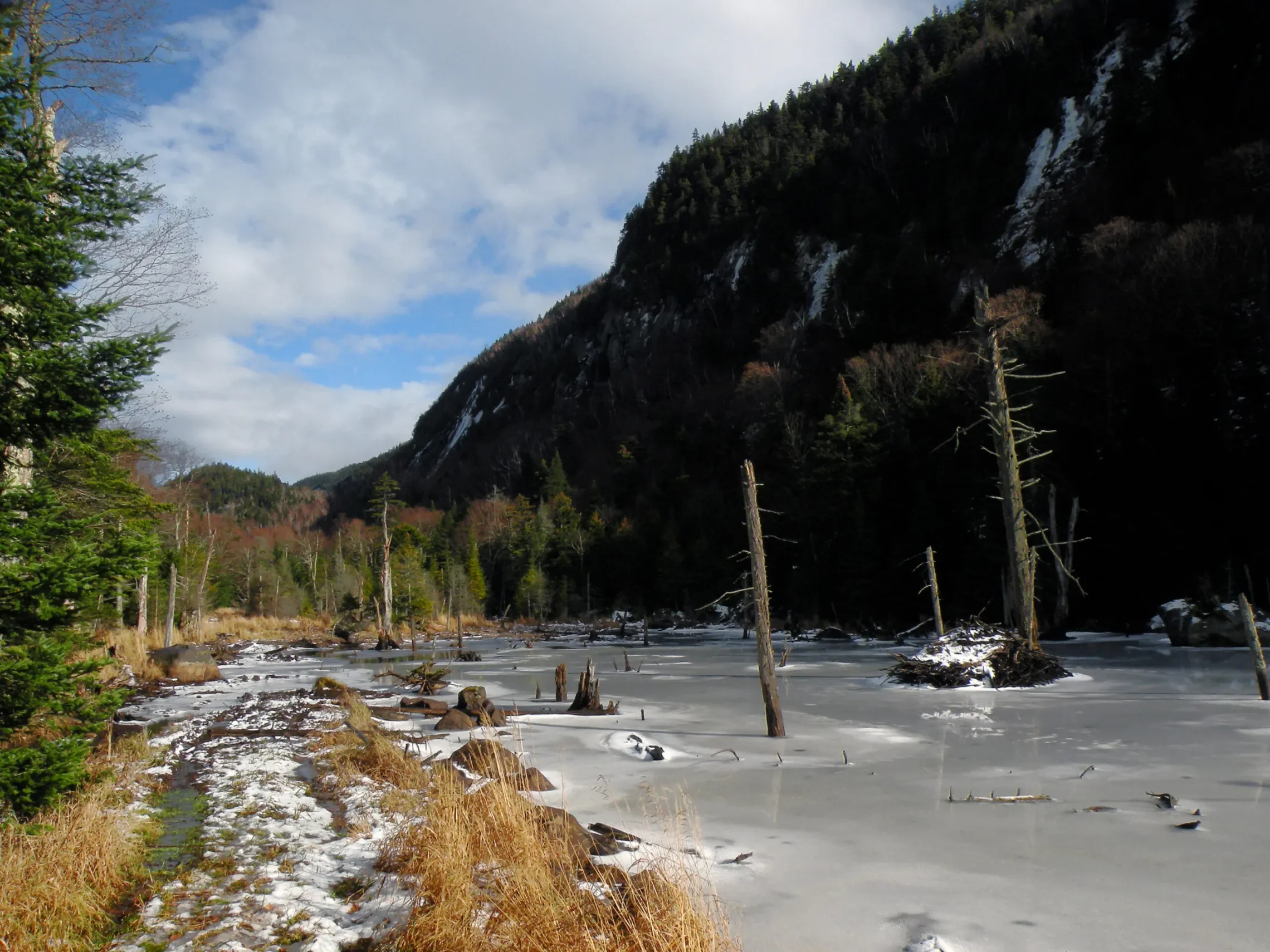 Beginning in the early part of the nineteenth century, these routes, which enabled settlers to gain access to the region’s natural resources and build settlements near sources of waterpower, gradually reached deep into the wilderness. As the merchantable trees – primarily spruce – were harvested, as tanneries moved away and the need for hemlock bark declined, and as iron mines elsewhere proved more valuable, the settlements began to shrink. Many of these roads have just disappeared – the old roads to North Branch Reservoir, the Notch Road, and the Groff Creek Road are just three of many vanished old routes in the Silver Lake Wilderness.
