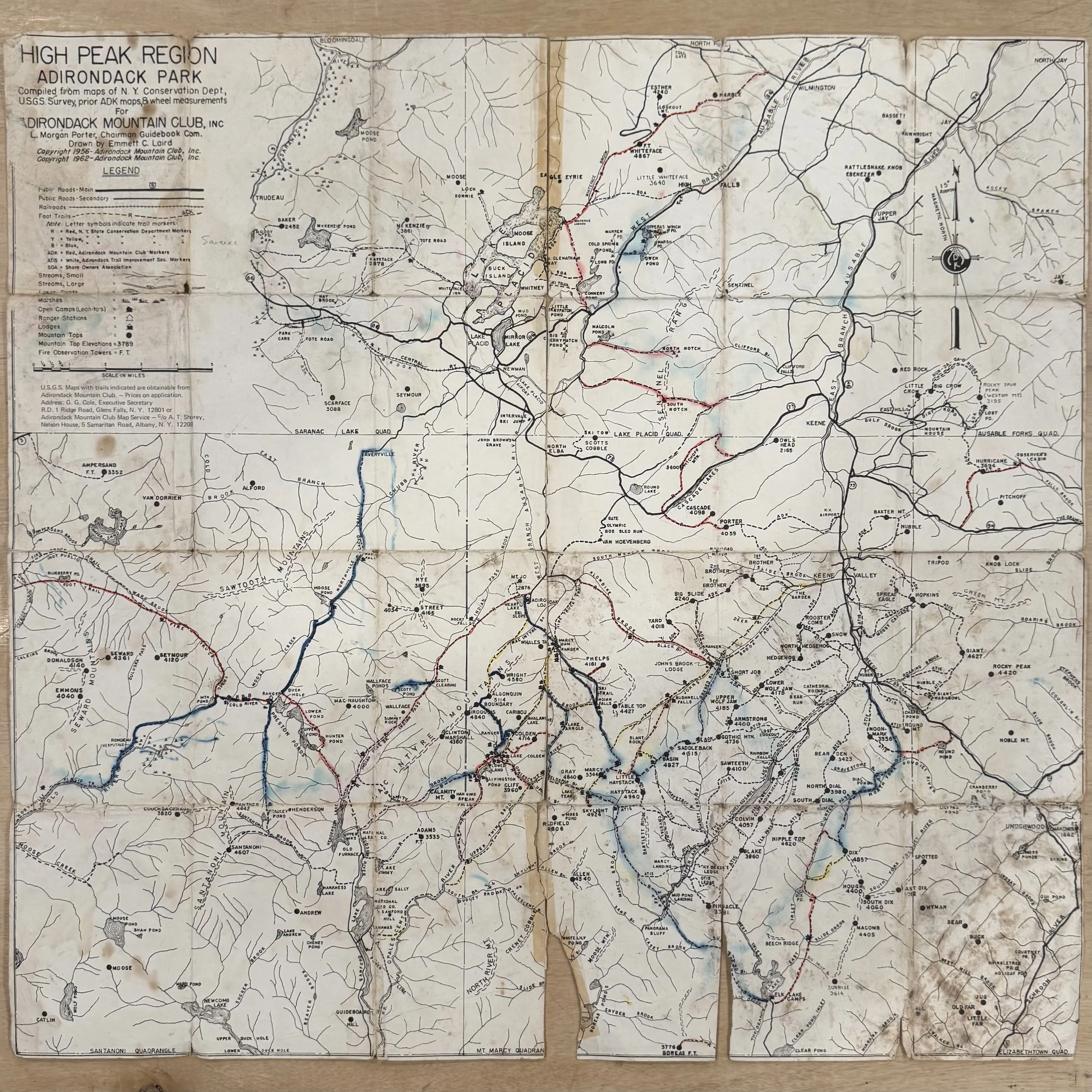Adirondack Mountain Club High Peaks Map, 1962 edition.