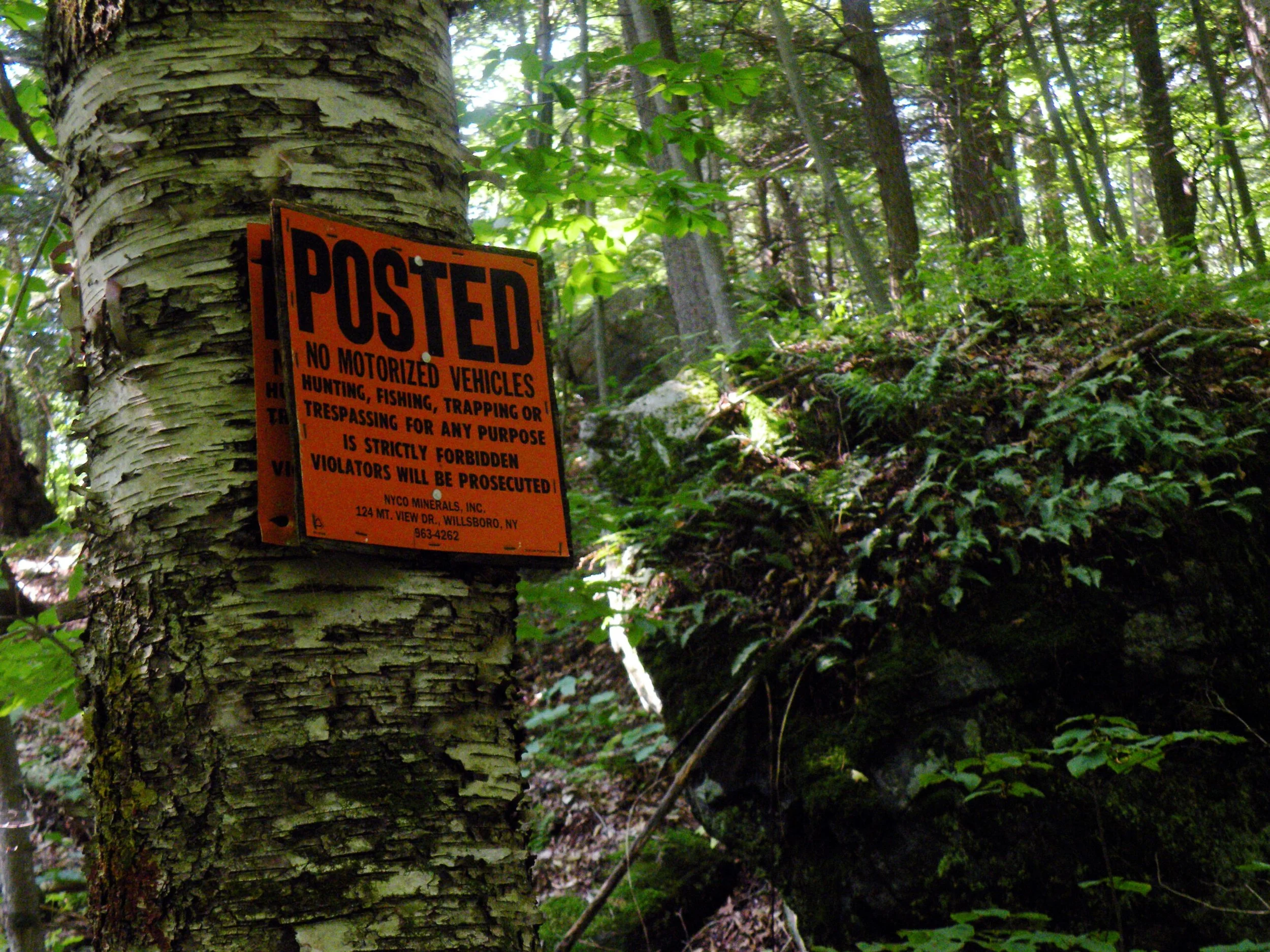 As it turns out, Lot 8 is easy to reach, even if it’s not a place anyone is ever likely to stumble across by accident. The woods between that lonely parking area at the end of Seventy Lane and the NYCO property line are easy to navigate, and the woods are impressive once you arrive. It’s an easy matter to follow the posted boundary around a right-angle corner straight to the mine, where the wilderness forest comes to an abrupt end and the mine opens up like a chalky maw in the surface of the Earth.