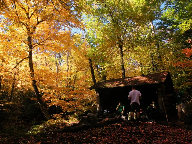 One of the beauties of fall is that it is totally immersive. This was the old Boquet River Lean-to, before it was moved and while the surrounding area was still part of the Dix Mountain Wilderness — now an extension of the High Peaks Wilderness.